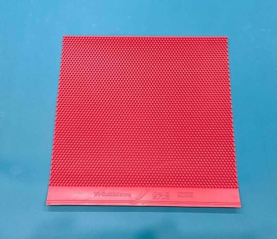 また弊社で試打用として使用しております、粒高ラバー(トリックウエーブnevagiva社)パッケージ入り新品ラバーをお付けします(色は赤、厚さは0.5mm)。